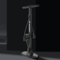 Wozinsky WPR-02 to podłogowa pompka rowerowa zaprojektowana z myślą o wygodzie i stabilności podczas pompowania. Wyposażona w czytelny manometr umieszczony na wysokości wzroku, umożliwia kontrolę ciśnienia bez schylania się. Szeroka podstawa zapewnia pewne oparcie stóp, a kompatybilność z wentylami Presta i Schrader zwiększa jej uniwersalność. Sprawdzi się zarówno do roweru, jak i innych pompowanych akcesoriów.