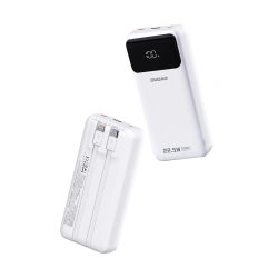 Powerbank Dudao K15Pro o pojemności 20000 mAh i mocy do 22.5W, z portami USB-C / USB-A i wbudowanymi kablami Lightning i USB-C - biały