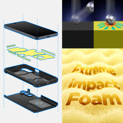 pantalla teléfono El interior de la funda está relleno de espuma tecnológica, que proporciona una capa adicional de protección contra golpes o caídas deldispositivo. La forma ligeramente elevada de la funda rodea la cámara y la protege de arañazos, elevándose justo por encima de la superficie plana. Tiene cubiertas para los botones y recortes para los puertos.