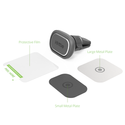 The Tap Magnetic 2 magnetic Holder is an elegant and compact magnetic mounting solution that holds your smartphone securely while driving. Designed for maximum comfort, the iTap 2 features two rare earth magnets that provide a firm hold for all smartphones and case combinations. The metal plate set includes small and large metal plates and a protective film that attaches directly to the back of your smartphone or case and won't interfere with wireless charging when properly positioned. Install iTap Magnetic 2 on the air vent of any vehicle with a Twist lock which presses down firmly on the ventilation blades. Once the mounting system is installed, simply touch your smartphone on the magnetic mounting head to secure your device throughout your journey. Find the perfect viewing angle with the swivel ball joint that swivels for more comfort. The iTap Magnetic 2 iOttie ventilation handle is strong and compact to safely enhance your driving experience on any road.