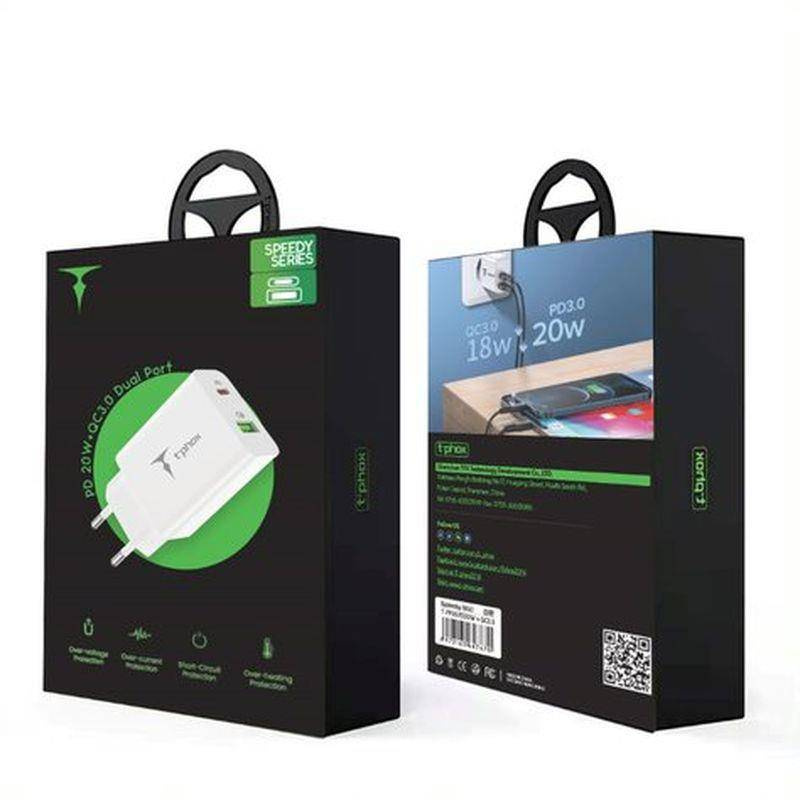 T-PHOX SPEEDY USB-C 20W + USB 18W QC 3.0 BLANCO/BLANCO