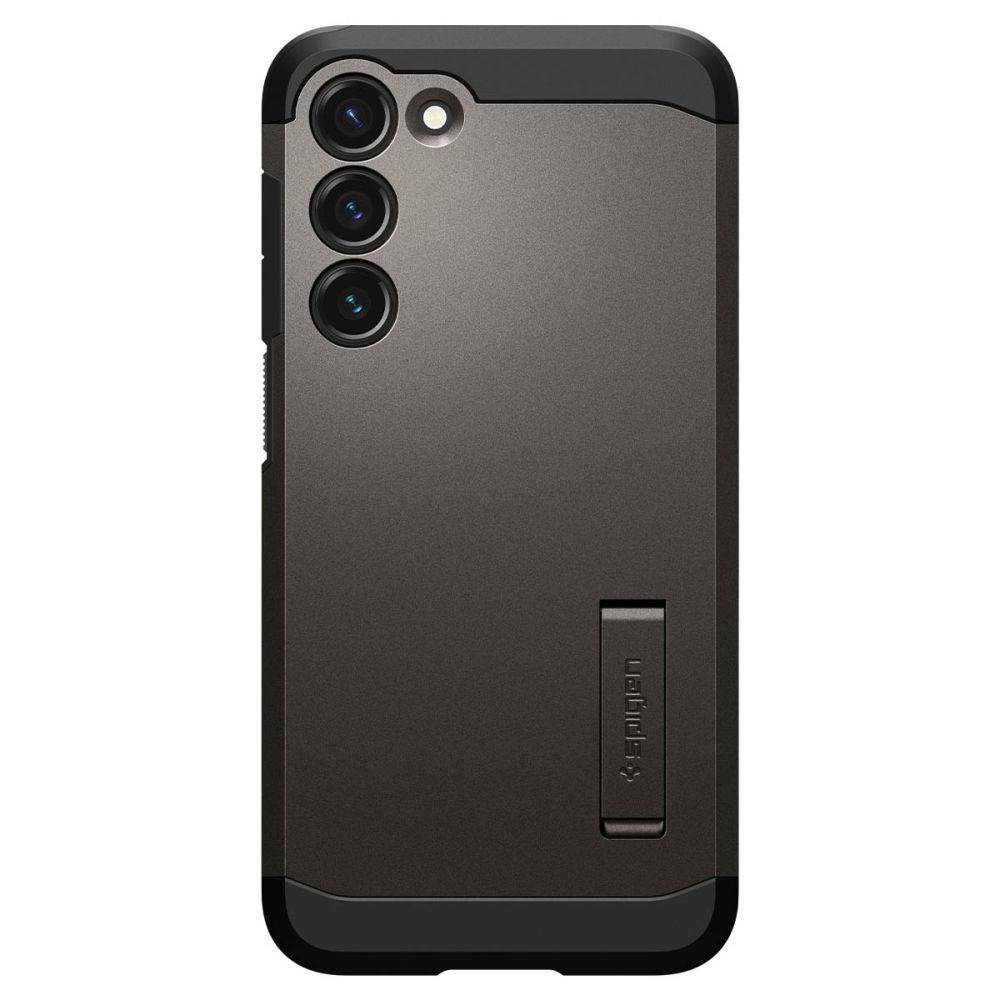 Funda de la serie Tough Armor marca Spigen es nuevo m cubierta de la empresa. Su construcción en dos partes está hecha de termoplástico resistente a la abrasión y un marco de policarbonato de refuerzonuevoj. El interior de la funda está relleno de espuma tecnológica, que proporciona una capa adicional de protección contra impactos o caídas del dispositivo.