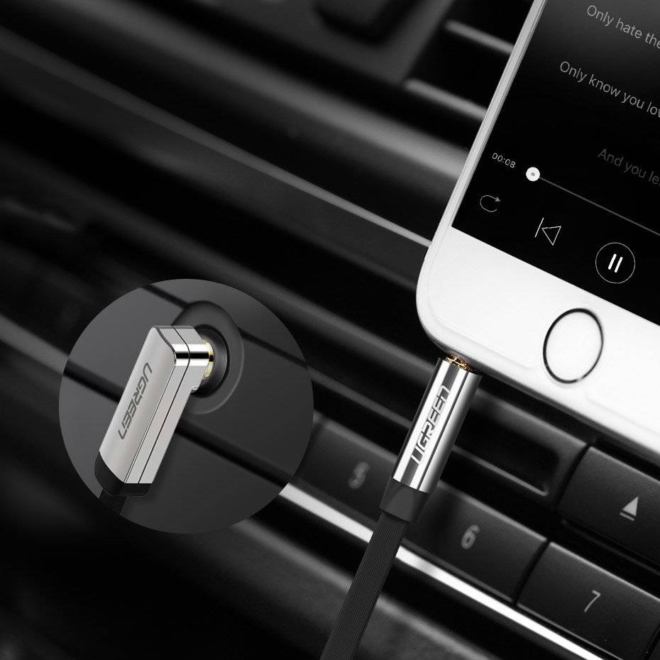 A flat AUX audio cable from the Ugreen company with a 5m angled plug on one end