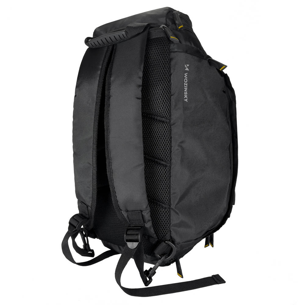 Conozca la bolsa multifuncional Wozinsky que se transforma en una cómoda mochila en poco tiempo. Es espacioso, resistente al agua y duradero . Tiene un tamaño compacto , pero gracias a los amplios bolsillos laterales, será perfecto para entrenamientos y pequeños y grandes viajes. Las dimensiones de 40 x 20 x 25 cm le permiten llevar la bolsa a bordo del avión como equipaje de mano .