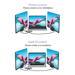 Si vous voulez regarder des films sur grand écran directement depuis votre ordinateur portable, rien de plus facile. Le gadget est équipé de deux prises HDMI, grâce auxquelles vous pourrez facilement connecter votre ordinateur portable au téléviseur et profiter de films de haute qualité. De plus, si un autre moniteur est connecté, le HUB peut fonctionner dans les modes suivants : extension d'image ou copie.