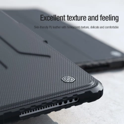 Kombinacja elastycznego TPU i mocnego PC, dodatkowo wzmocniona powłoką z skóry PU, sprawia, że etui Nillkin Bumper SnapSafe oferuje podwójną ochronę dla Twojego tabletu. Ochrona ta nie ogranicza się tylko do zewnętrznych uszkodzeń mechanicznych, ale również zabezpiecza przed kurzem i zarysowaniami. Elegancki wzór w plastry miodu na zewnętrznej warstwie nie tylko dodaje urządzeniu wyjątkowego wyglądu, ale również zapewnia dodatkową warstwę ochronną.
