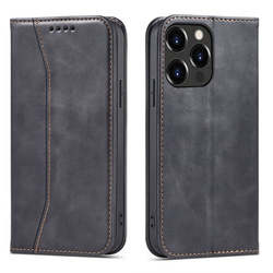 iPhone 14 Plus Magnet Fancy Case Flip Cover avec fonction portefeuille et béquille Noir
