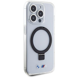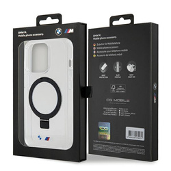 Coque L'anneau Stand M Collection MagSafe se distingue par les logos du groupe automobile bavarois et de l'ensemble M appliqués sur la partie inférieure du couvercle, qui confèrent au produit un aspect élitiste. Ces logos sont en même temps une confirmation de l'authenticité et de la qualité supérieure du produit