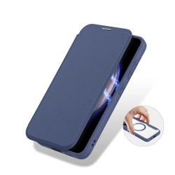 Étui tendance avec rabat en cuir écologique, compatible avec MagSafe. Cet accessoire élégant protège non seulement votre smartphone de tous les côtés, mais facilite également l'organisation au quotidien. A l'intérieur vous trouverez plusieurs compartiments pour documents ou cartes de crédit.