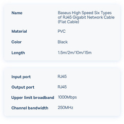 • Baseus high Speed Six types of RJ45 Gigabit network cable (flat cable)2m Black