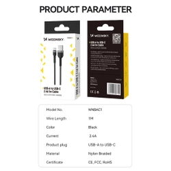 Câble Wozinsky WNBAC2 avec connecteurs USB-A - USB-C 2,4A, 2 m de long - noir