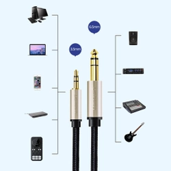 Audio cable 3.5 mm to 6.35 mm UGREEN AV127 is equipped with gold plated connectors, additional zinc covers and braided coating. It not only offers excellent sound quality, but also stands out for its strength and resistance to damage. The product is compatible with many devices, so you can use it for various applications.