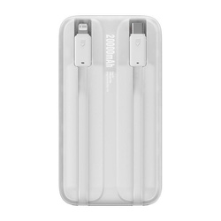Już nie musisz czekać, aż jedno urządzenie będzie naładowanie, aby podłączyć kolejne! Powerbank został wyposażony w 2 porty – USB-C oraz USB-A, a ponadto posiada wbudowane dwa kable – USB-C oraz Lightning. Teraz możesz bez przeszkód ładować aż 4 urządzenia w tym samym momencie! Za jego pomocą z powodzeniem odnowisz energię smartfona, tabletu, bezprzewodowych słuchawek, smartwatcha czy elektrycznej szczoteczki.