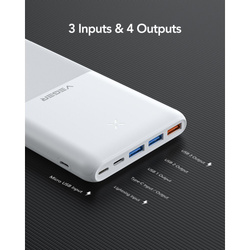 6 portów, w tym Micro USB, USB-C, Lightning i 3x USB, obsługuje technologie szybkiego ładowania Power Delivery (20 W), Quick Charge 3.0 (18 W), AFC, SCP i FCP, a do tego umożliwia naładowanie w tym samym czasie czterech urządzeń, np. smartfona, tablet, podręczną konsolę czy słuchawki typu TWS. Dzięki USB-Ci  bez problemu podłączysz najnowszy sprzęt na rynku.
