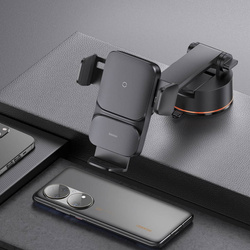 Support de téléphone de voiture pour chargeur à induction Baseus Wisdom sur le tableau de bord (ventouse) noir