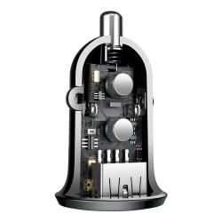 Un petit chargeur de voiture peut être très puissant. C'est ce que prouve le produit Baseus équipé de deux ports de charge USB. La puissance totale avec laquelle il peut fonctionner et charger deux appareils est même de 4,8A. Rapidement et en toute sécurité grâce à l'utilisation de jusqu'à 6 fonctions de sécurité intelligentes.