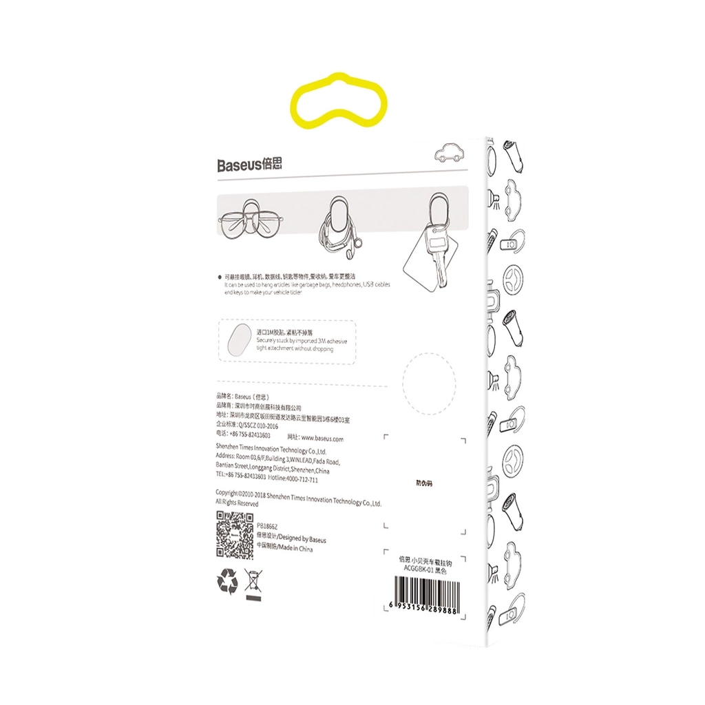 Baseus hooks are universal and help to keep cables, headphones, keys and many other things organized. They can be used in the apartment, at work and also in the car. The durable plastic is resistant to wear and tear. The strong 3M adhesive tape provides a firm hold and is easy to remove after peeling off.
