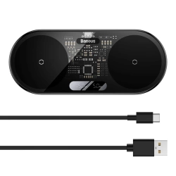 Double chargeur sans fil Qi Baseus Digital LED Display avec affichage numérique 20W noir (WXSX010101)
