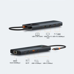 HUB 10in1 Baseus Metal Gleam Series USB-C vers USB-C PD / USB-C / 3x USB-A / 2x HDMI / RJ-45 / SD / TF - noir