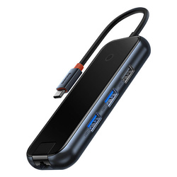 • Hub 5w1 Baseus AcmeJoy series USB-C do 2xUSB 3.0 + USB 2.0 + USB-C PD + RJ45 (szary)