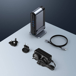 HUB multifonction Baseus 3x USB 3.2 Gen 1 / 2x USB Type C / Lecteur de carte SD et micro SD / AUX / 2x DisplayPort / 2x HDMI / RJ45 1Gbps Power Delivery 100W (EU / CN / UK plug set) gris (CAHUB-DG0G)