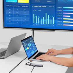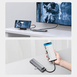 HUB multifonction Baseus Metal Gleam 11en1 USB Type C - 3x USB 3.2 Gen 1 5Gbps / USB Type C PD 100W / mini jack 3,5 mm AUX / VGA Full HD 60Hz / 2x HDMI 4K 30Hz / Lecteur de carte TF et SD / RJ45 1Gbps gris (CAHUB-CT0G)