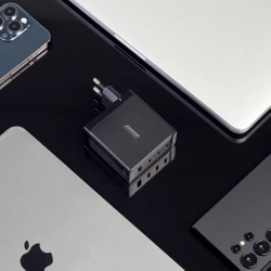 Chargeur GaN Joyroom JR-TCG04EU avec puissance jusqu'à 100 W avec 3 ports USB-C et 1 port USB-A + câble USB-C / USB-C 100 W - noir