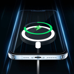 Le boîtier est équipé d'un aimant, grâce auquel le boîtier est compatible avec les accessoires MagSafe. Il s'agit d'une toute nouvelle norme pour une connexion rapide et facile des accessoires et des chargeurs sans fil. Il a de grandes possibilités et peut fonctionner avec de nombreux accessoires modernes.