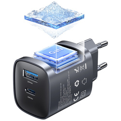 USAMS CC290 T66 to kompaktowa ładowarka sieciowa z technologią GaN o łącznej mocy 45 W, wyposażona w dwa uniwersalne wyjścia: USB-C i USB-A. Dzięki GaN jest mniejsza, chłodniejsza i bardziej wydajna od klasycznych zasilaczy, a jednocześnie zapewnia szybkie ładowanie nowoczesnych urządzeń.