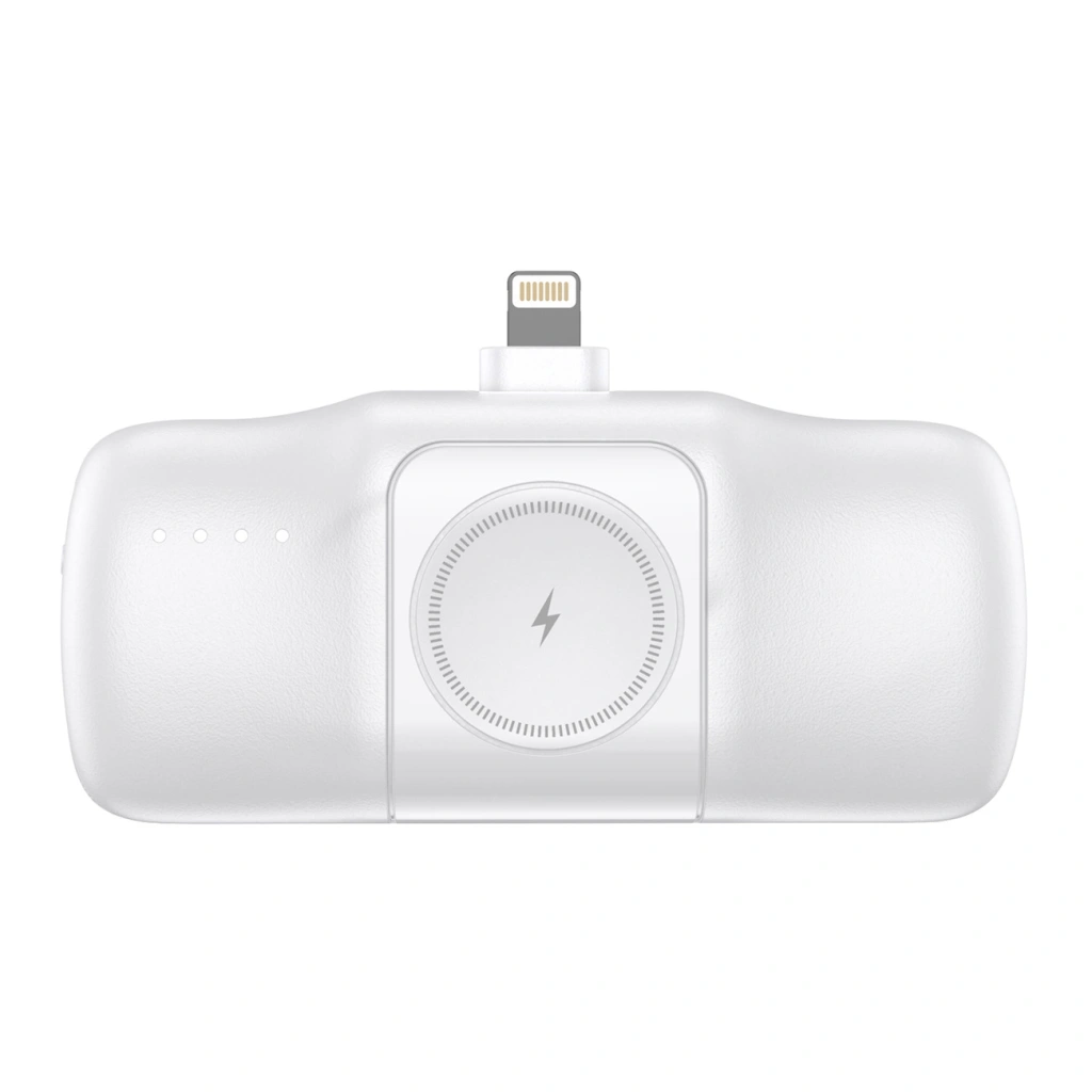 Mini powerbank Wozinsky WF16-YLS 5000mAh 15W Lightning z wbudowanym kablem USB-C i ładowarką do Apple Watch - biały