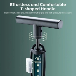 - La base pliable et la poignée amovible facilitent le transport et le rangement . Elle est dotée d'un long câble sans enchevêtrement qui vous permet de connecter facilement la pompe à la valve de votre vélo.