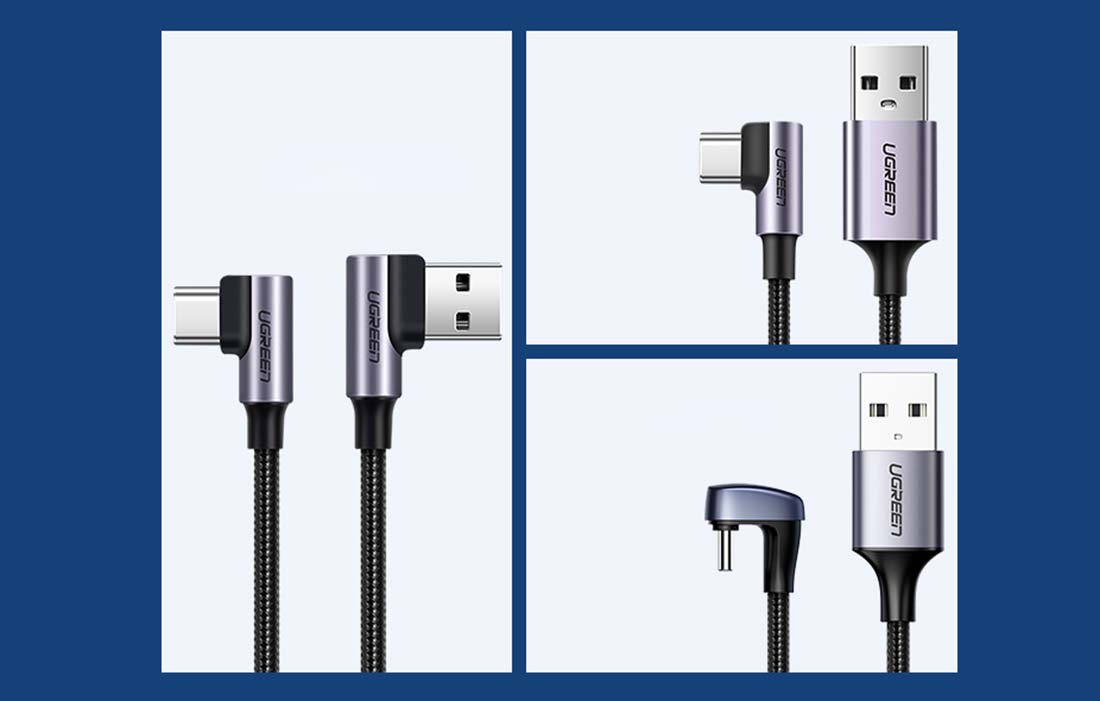 Câble la clé USB-A à USB-C coudée UGREEN US176 vous offrira un plus grand confort lorsque vous jouez, regardez des films et lisez des livres électroniques grâce à son design unique. Il permet une charge rapide et sûre de 3A, protégeant téléfono portable de la haute tension. Il est fabriqué à partir de matériaux durables pour s'assurer qu'il résiste aux dommages.