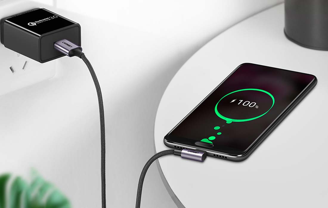 Câble le câble d'angle UGREEN est synonyme de haute qualité, de durabilité et d'esthétique. Le câble est fabriqué en nylon et en aluminium de haute qualité. Cette combinaison permet d'éviter l'usure typique et l'enchevêtrement du câble.
