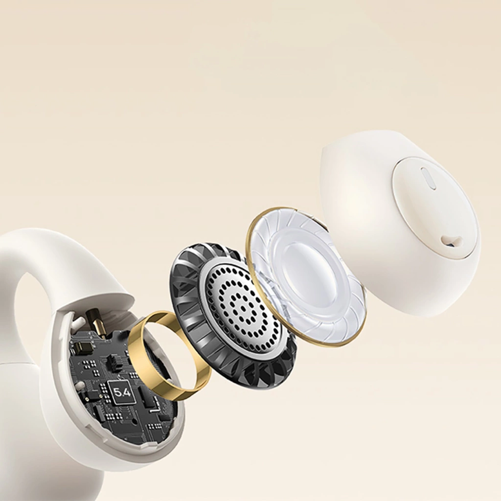 Baseus Bass 15 Clip OWS to bezprzewodowe słuchawki o otwartej konstrukcji, które pozwalają słuchać muzyki i jednocześnie pozostawać w kontakcie z otoczeniem. Lekkie, ergonomiczne i niezwykle wygodne – idealne do codziennego użytku, sportu i pracy. Zastosowana technologia kierunkowej akustyki zapewnia czysty, donośny dźwięk z głębokim basem, a nowoczesny chip Bluetooth 5.4 gwarantuje stabilne połączenie i niskie opóźnienia. W zestawie znajduje się kabel Baseus Simple USB-C 3A (30 cm), który umożliwia szybkie ładowanie etui i innych urządzeń mobilnych.