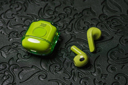 Słuchawki mają wbudowane baterie o pojemności 40 mAh, które zapewniają do 5 godzin ciągłego słuchania muzyki, a ich etui z dodatkową baterią o pojemności 250 mAh pozwala na wygodne ładowanie w drodze. Czas ładowania słuchawek to około 1,5-2 godziny, co jest wyjątkowo efektywne i pozwala szybko powrócić do ulubionych dźwięków. Port ładowania USB-C jest obecnie standardem, dzięki czemu słuchawki można ładować przy użyciu większości nowoczesnych kabli i ładowarek. Cyfrowy wyświetlacz wskazuje poziom naładowania słuchawek jak i samego etui.