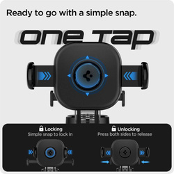 Spigen L'UTS35 OneTap est un support universel pour voiture support, monté sur le tableau de bord, le pare-brise ou l'arrière écran. Idéal pour ceux qui recherchent un support téléfono portable durable et stable pour tous leurs déplacements.