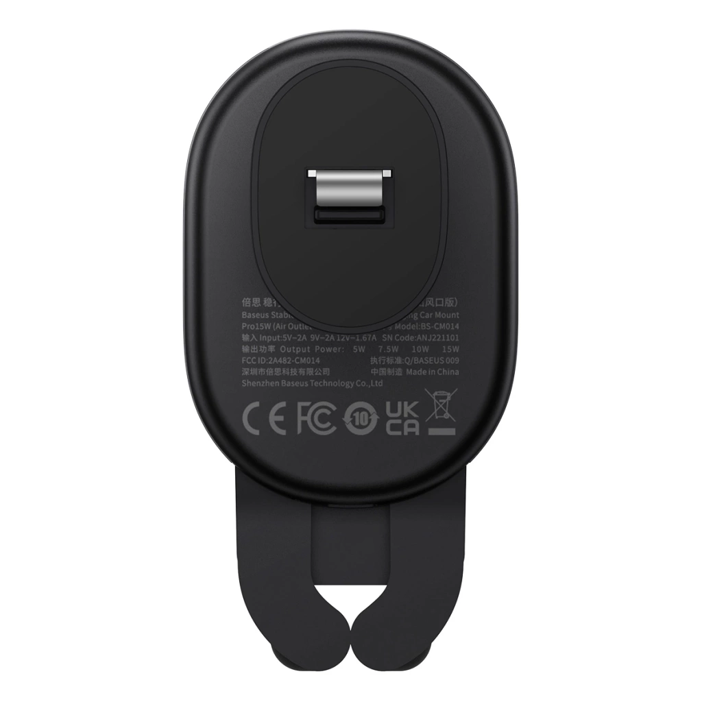 Support voiture Baseus avec chargeur inductif 15W intégré pour bouche d'aération noir