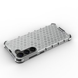 Cas de la série Honeycomb il est fait d'un matériau thermoplastique et durable disposé en forme de nid d'abeille. La coque est adaptée au Samsung Galaxy S23+ , protège parfaitement le téléphone contre les dommages dus aux chutes ou aux rayures (par exemple, par des clés transportées dans une poche). Les bords surélevés autour de l'écran et de la caméra arrière empêchent le téléphone de rayer ces éléments lorsqu'il est placé sur une surface plane. Il a des boutons réactifs et des découpes pour les ports. Parfait pour les personnes qui apprécient le style, la qualité et qui veulent prendre soin de leur appareil.