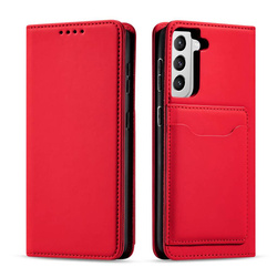 Étui pour cartes magnétiques pour Samsung Galaxy S22 + (S22 Plus) pochette portefeuille porte-cartes rouge
