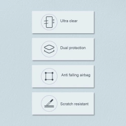 The product provides 360 ۫ protection for your hardware. A built-in buffer protects the phone's screen. Impact-resistant cushions were used on the corners to cushion the fall of the equipment. In addition, protection for the rear camera has been provided, by raising its frame. The accessory boasts high scratch resistance and a transparent design.