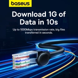 Ensure a reliable connection to the Internet! The Baseus network cable offers speeds as fast as 1000 Mbps and works with many popular devices. Reinforced construction made of durable PVC guarantees durability and resistance to damage. The 26 AWG thick cable conducts the signal perfectly, ensuring a stable connection, while gold-plated contacts reduce interference.