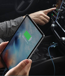 The charger is not only efficient but also very aesthetic. A tasteful metal casing looks good inside the car and is resistant to overheating. The device also has other kinds of protection – overcurrent protection and against short-circuit. Thanks to its perfect shape, it remains stable even when driving on a bumpy road.