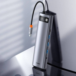 • Baseus Metal Gleam 11in1 multifunctional HUB USB Type C - 3x USB 3.2 Gen 1 5Gbps / USB Type C PD 100W / 3,5 mm mini jack AUX / VGA Full HD 60Hz / 2x HDMI 4K 30Hz / TF and SD card reader / RJ45 1Gbps gray (CAHUB-CT0G)