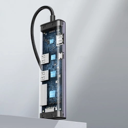 Expand your capabilities with the UGREEN adapter. The device features several practical ports, such as 2 USB 3.0 ports, HDMI, RJ45 and SD/TF card slots. The hub allows you to display video on a large screen in 4K30Hz quality and provides data transmission speeds of up to 5 Gbps. It also supports fast PD charging with up to 100 watts of power. It stands out for its wide compatibility, and thanks to its lightweight and compact design, you can easily take it with you to college or work.