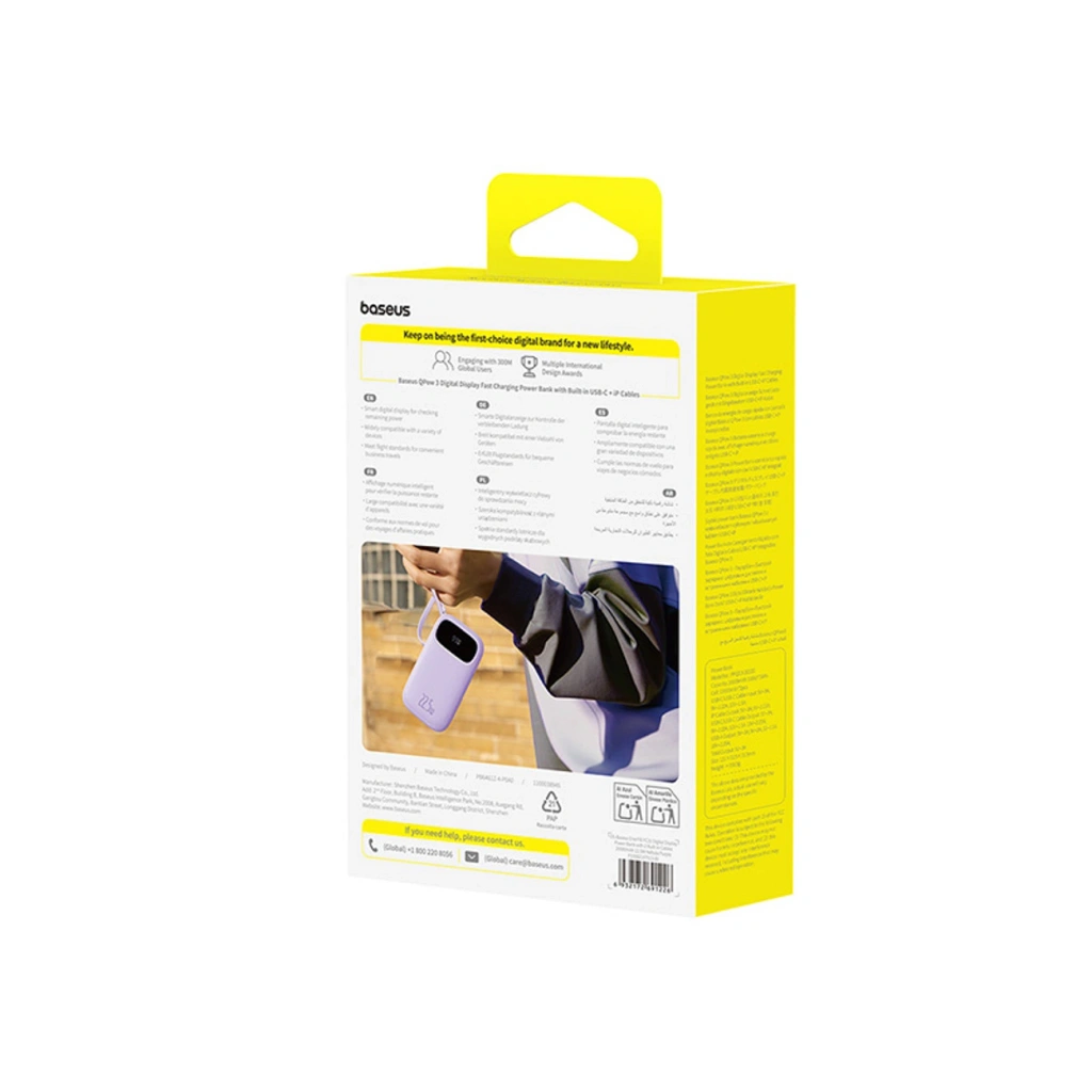 • Powerbank Baseus EnerFill FC21 Qpow 3 Ultra 20000mAh 22.5W z wyświetlaczem cyfrowym z dołączonym kablem - fioletowy