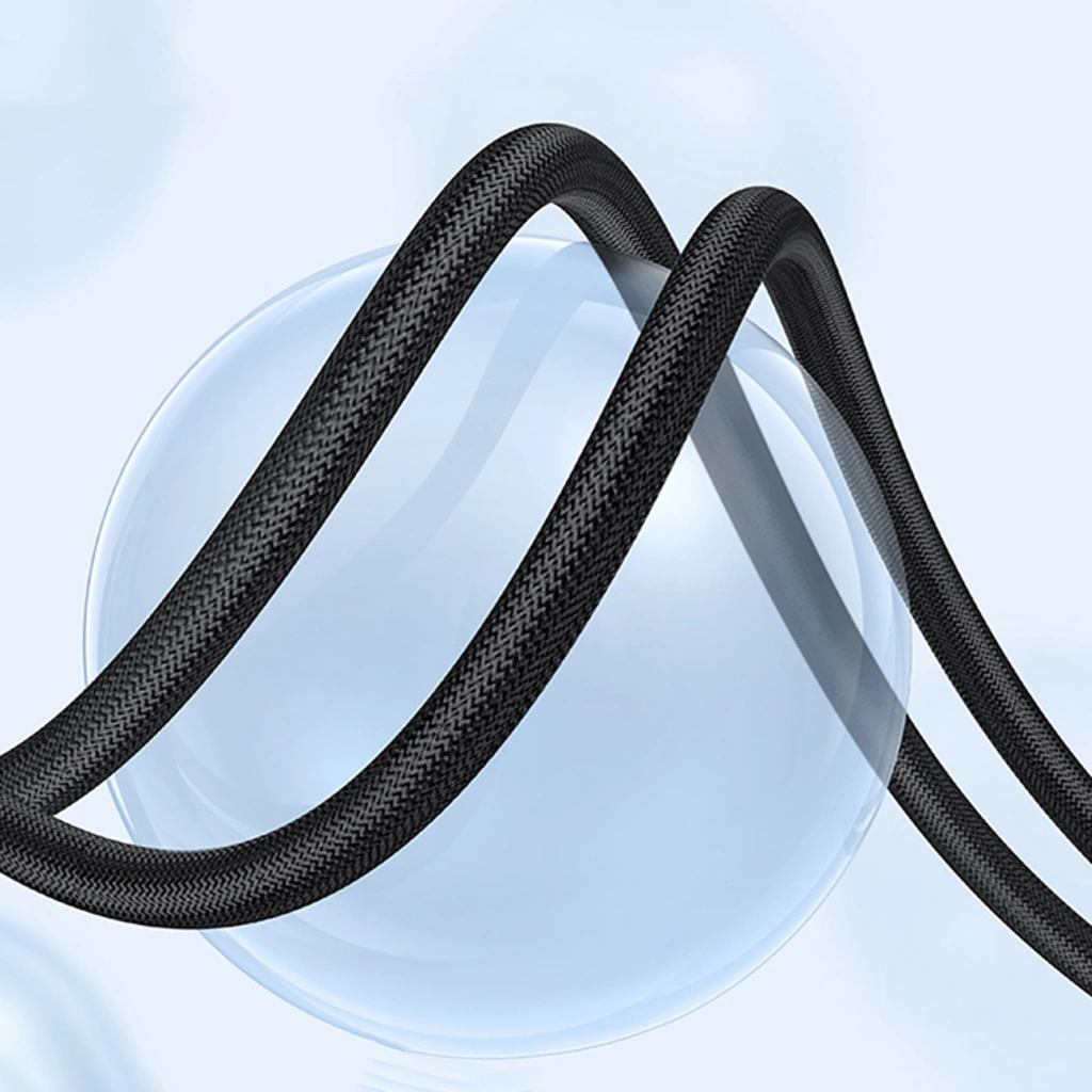 Miękki, gęsto pleciony kabel odporny na zginanie i plątanie chroni przewody wewnętrzne, zapewniając długotrwałe użytkowanie bez uszkodzeń.