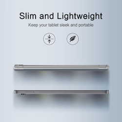 Krystalicznie przejrzyste plecy podkreślają oryginalny design Twojego tabletu, nie zakrywając jego estetyki. Precyzyjnie wycięte otwory zapewniają pełny dostęp do wszystkich portów, przycisków i aparatów bez konieczności zdejmowania etui. Cienki i lekki profil zachowuje smukłą sylwetkę tabletu, dodając minimalną objętość.
