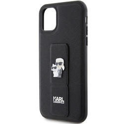 Etui Karl Lagerfeld KLHCN61GSAKCPK iPhone 11 / Xr 6.1" czarny/black hardcase Gripstand Saffiano Karl&Choupette Pins Case