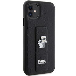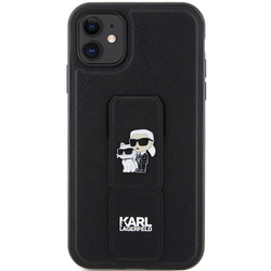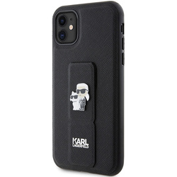 • Etui Karl Lagerfeld KLHCN61GSAKCPK iPhone 11 / Xr 6.1" czarny/black hardcase Gripstand Saffiano Karl&Choupette Pins Case