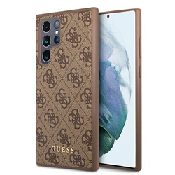 • Telefontok GUESS Samsung Galaxy S22 Ultra 4G fém arany logóval barna kemény tok